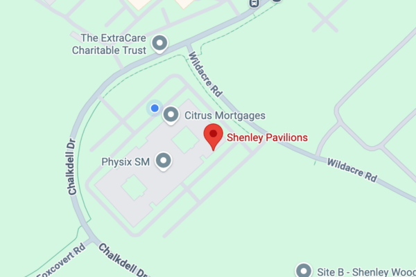 How to find us (where’s the front door?!) Drive along Chalkdell Drive and look for the big BLUE building (that’s Shenley Pavilions). Enter the car park and turn first left. Follow the road and the building around to the back corner and you’ll find our doorway on the right. Just look for our sign board outside!